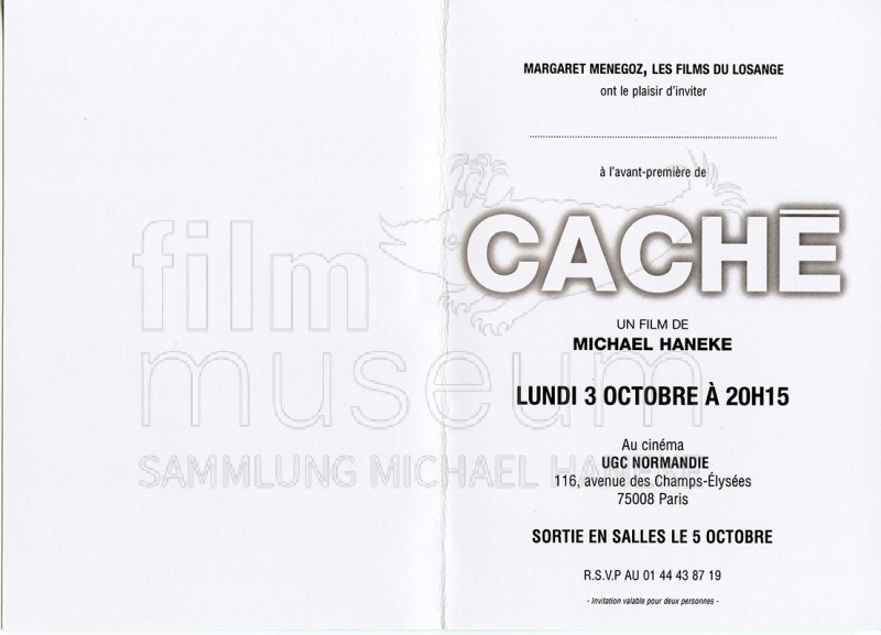 | Contains: | Konvolut: enthält 1 Werbeflyer anlässlich der EFA-Nominierungen (engl.), 1 Folder (frz.), 1 Folder-Einladung zur Frankreich-Premiere des Films am 3.10.2005 (frz., nicht ausgefüllt), 1 Flyer - Einladung zum Premierenempfang im "Four Seasons" Paris (frz.), 1 Flyer mit Terminen für Pressevorführungen (frz.) |