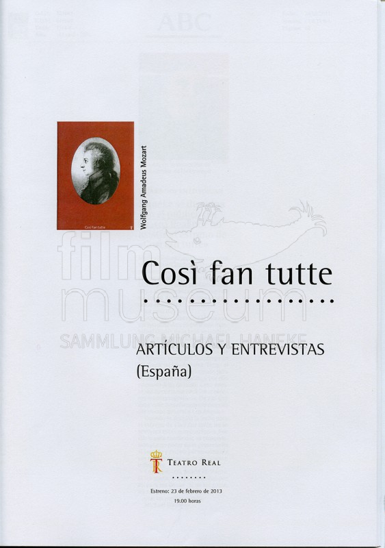 | enthält: | Zusammenstellung spanischer Presseberichte zu Hanekes Inszenierung von "Così fan tutte" in Madrid. Premiere: 23.2.2013 |
