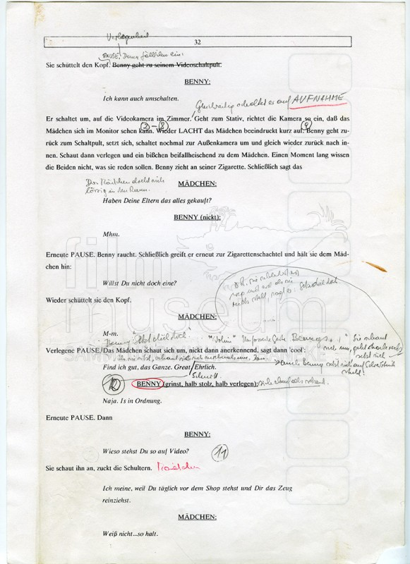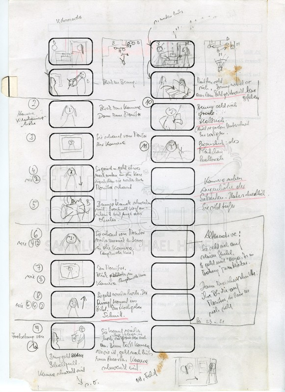 | enthält: | 1 Exemplar mit handschriftlichen Anmerkungen, Skizzen und eingefügten Fotos (Storyboard), 1 Mappe mit Szenenaufteilung |
