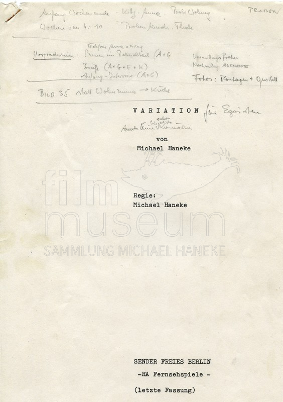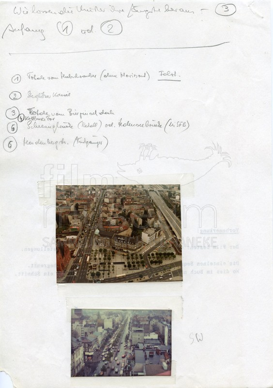 | enthält: | 1 Exemplar mit handschriftlichen Anmerkungen, Fotos und Skizzen (Storyboard) |