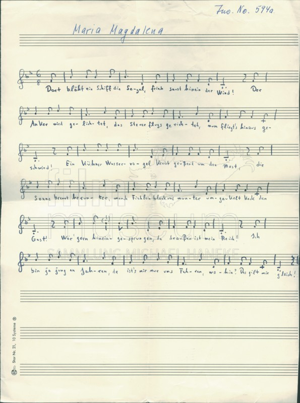 | enthält: | Noten und Text handschriftlich eingetragen, mit Nummer 594a versehen. Premiere: 3. Januar 1975 am Theater Baden-Baden. |