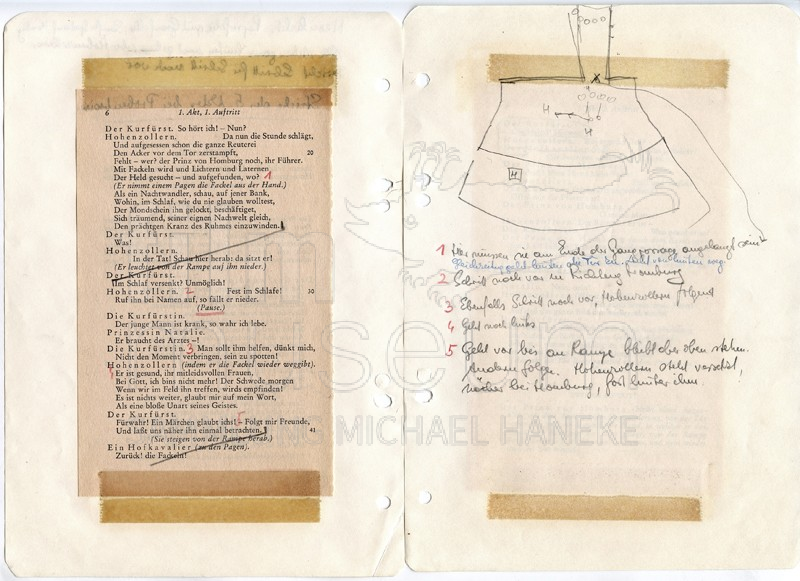 | enthält: | Dialoge (einzelne Seiten aus Reclam-Heft) werden dem Szenenablauf gegenübergestellt, vollständige Inszenierung handschrifltich dargelegt, mit der Schreibmaschine verfasster Szenenplan. Inszenierung am Theater Baden-Baden. |