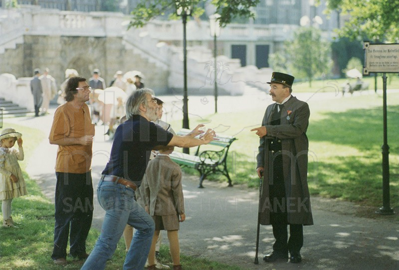 | enthält: | Produktionsfoto: Michael Haneke im Gespräch mit Hauptdarsteller Branko Samarovski während der Dreharbeiten, Standort: Burggarten Wien |