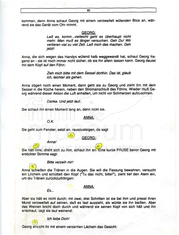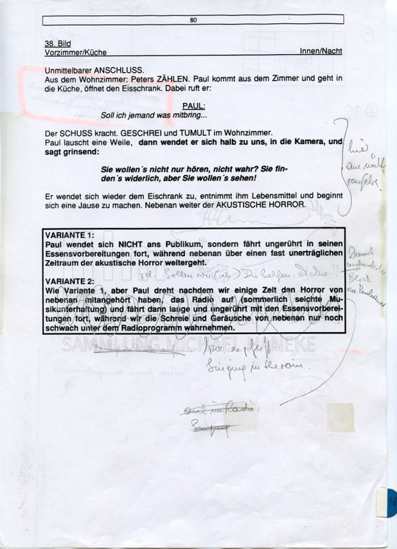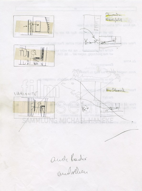 | enthält: | Regiedrehbuch, 1 Exemplar (dt.) mit handschriftlichen Anmerkungen, Skizzen (Storyboard) und eingefügten Fotos bzw. Laserkopien, computerunterstütze Raumansichten, Änderungen und Ergänzungen zur masch. Vorlage, Szenenaufteilung durch Registereinfügung in 52 Bilder (Szenen) |